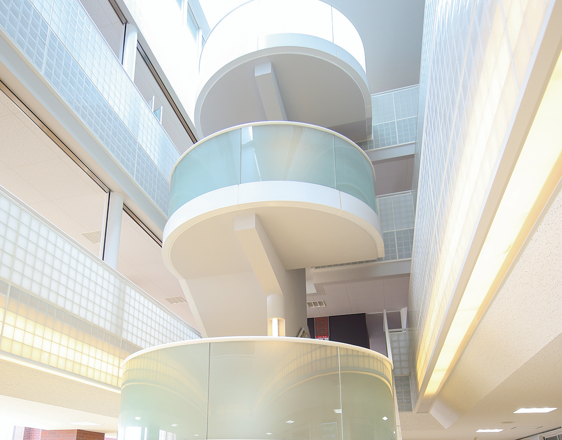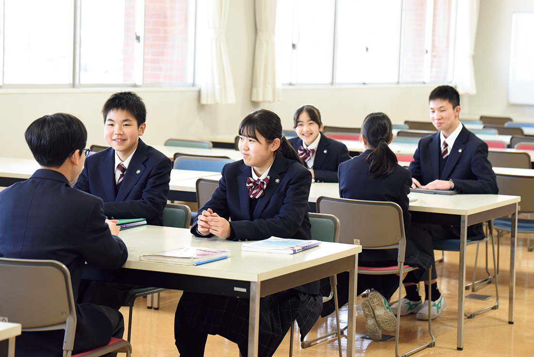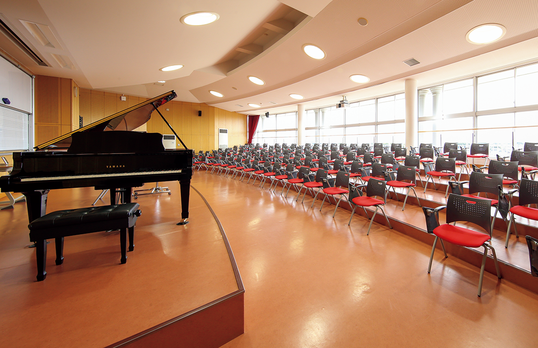 校舎は4階建てで、吹き抜けのある開放的な空間と明るい普通教室、機能的な特別教室など、充実した設備を完備しています。さらに、ラウンジ・多目的ホールをはじめ、生徒同士や生徒と教師の交流が活発に行える空間も配置してあります。実りある学園生活を送るための豊かな教育環境がこの附属中学校には整っています。