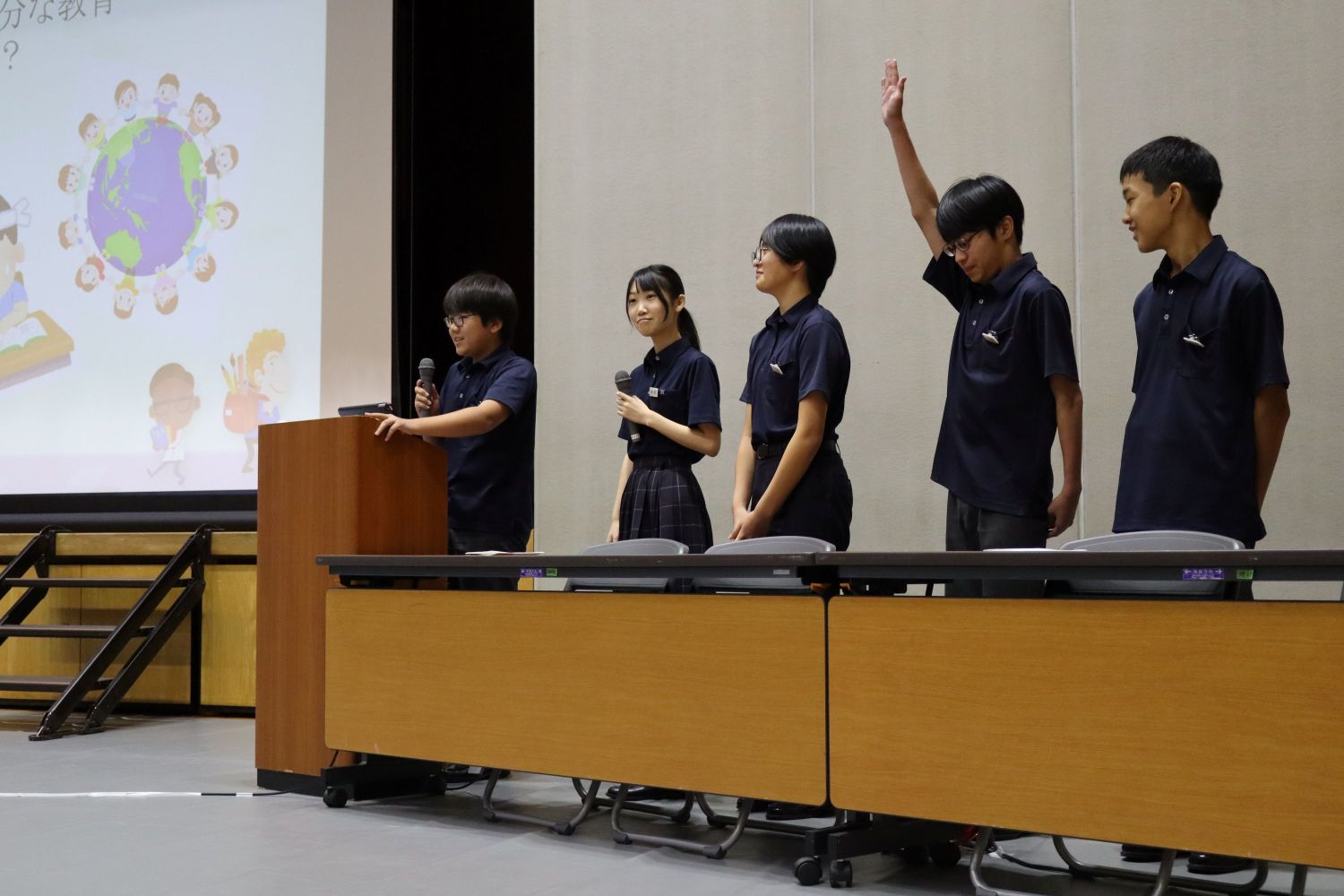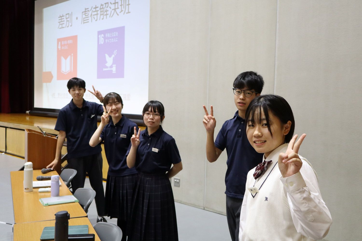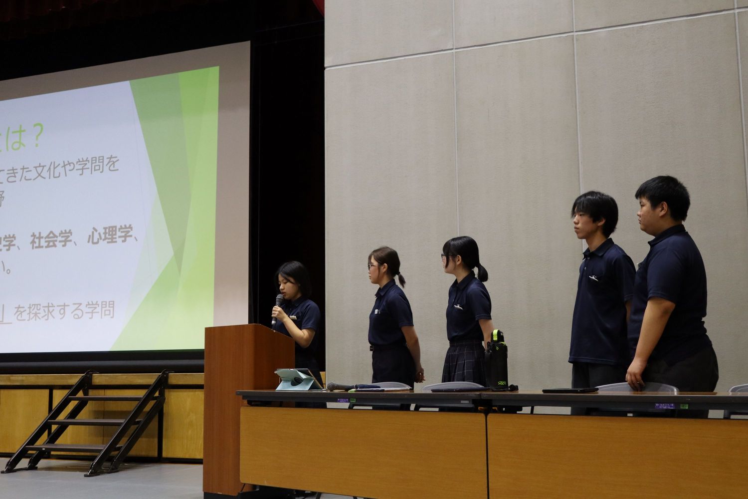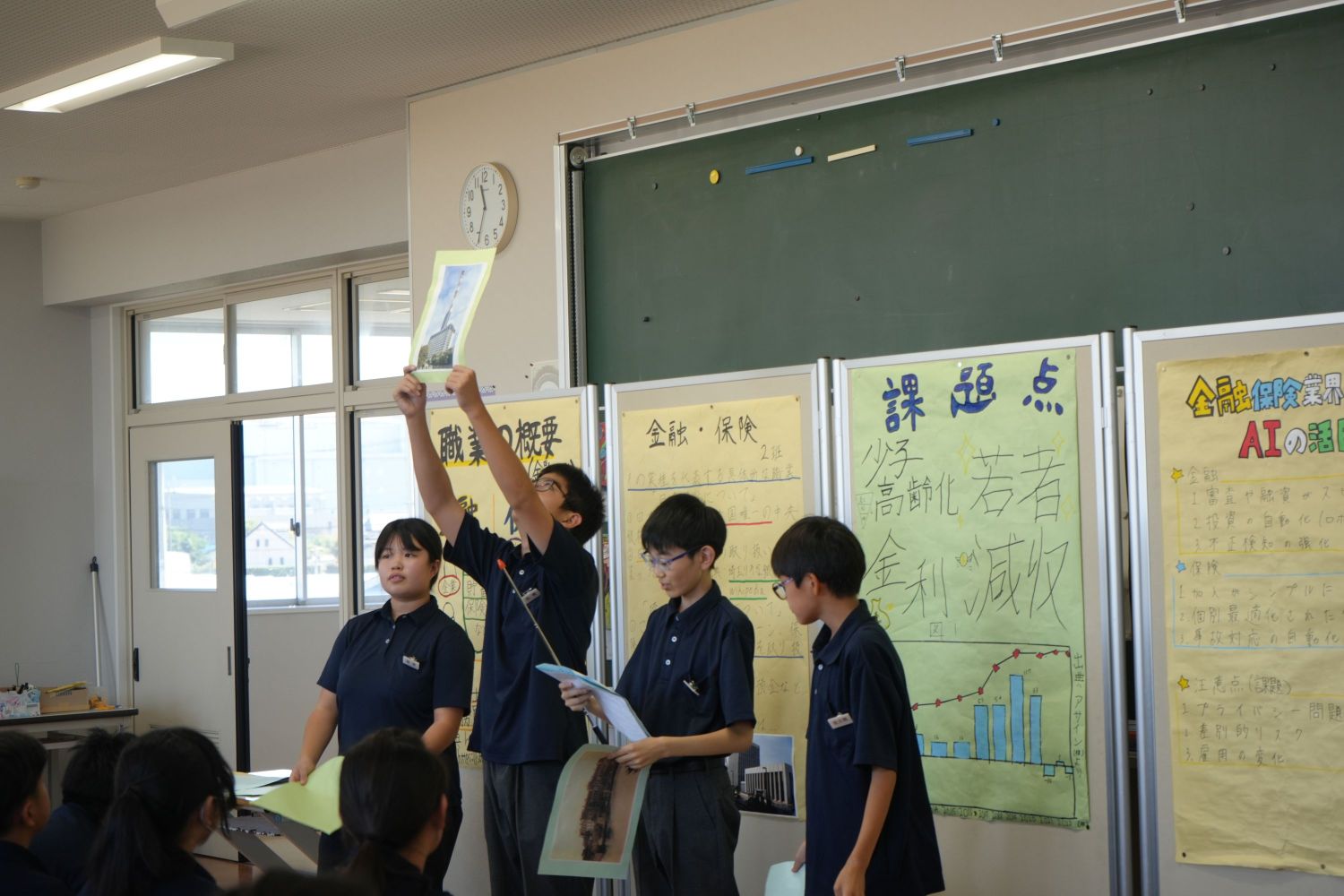 9月7日(日)きりぐるま祭が開催されました。今年も「オープニングセレモニー」として、筝曲部の演奏が行われました。1学年は、職業調べを模造紙にまとめて発表。2学年は、企業調べをもとに新しいビジネスを考えるというテーマの発表。3学年は、最先端の研究内容を調べ、社会課題を解決する方策を提案する「ソーシャルチェンジ」の発表。各学年とも個人で調べるだけではなく、班で話し合い、発表練習を重ねた様子が見られました。
