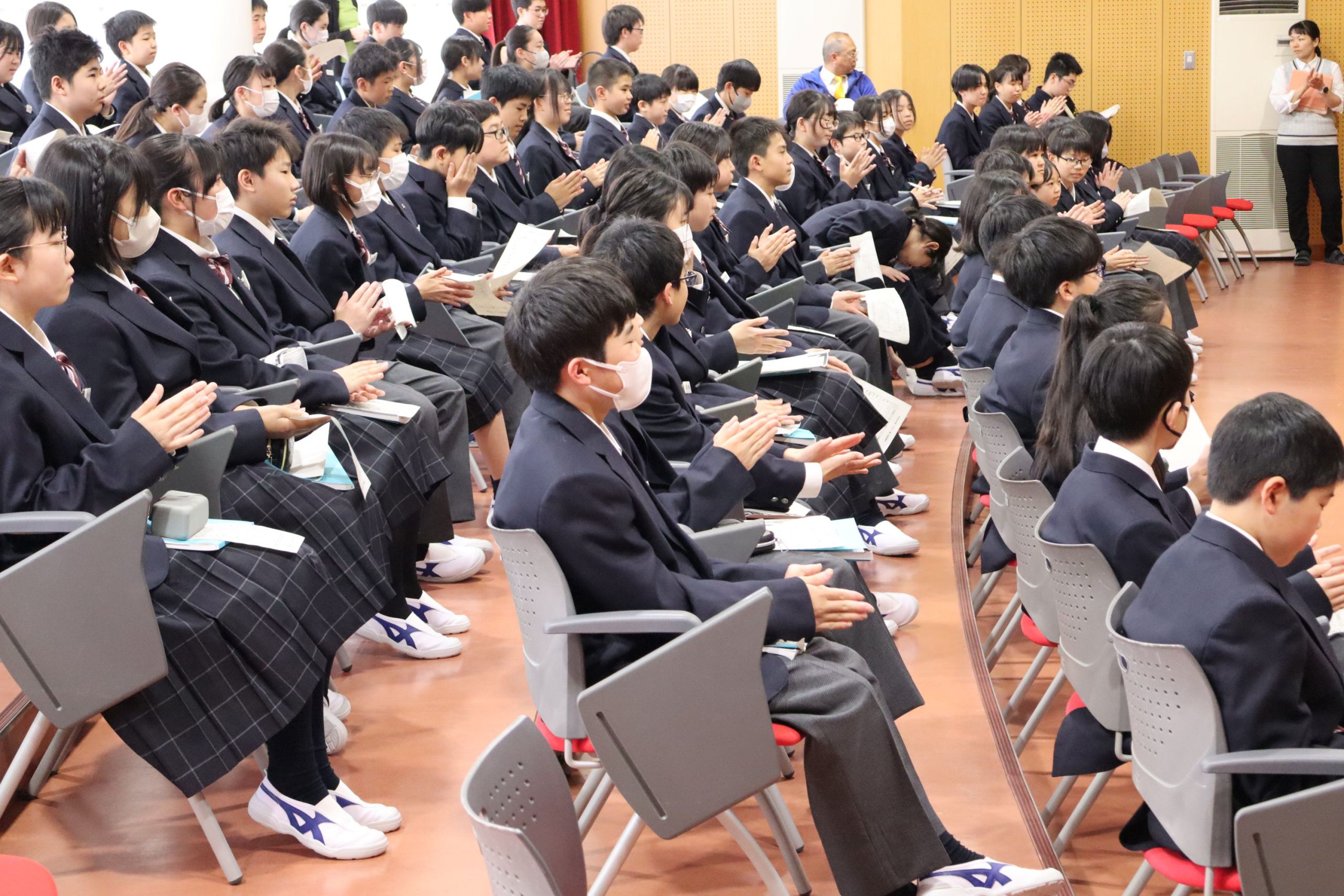 紹介を、1年生は熱心に聞いていました。本入部まで、見学や体験を通じて「これだ!」と思える