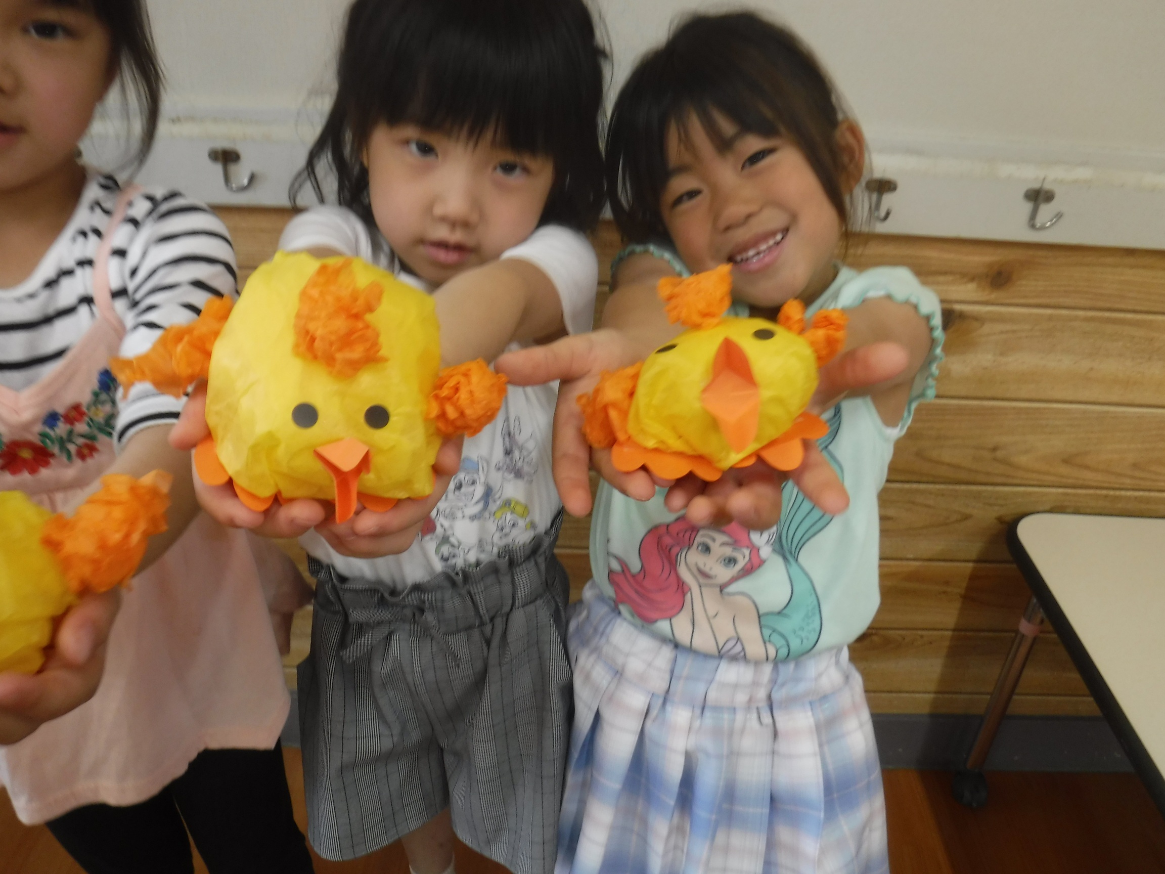 本庄青葉幼稚園からのお知らせ すべて お知らせ 行事情報 アルバム なかよしクラブ(延長保育)の活動 アルバム 2026年4月14日 4月14日「ひよこ作り」 お花紙を4枚かわいい形になるように優しく丸く包んでいきます。目、口ばし、とさか、足をつけたら完成です。個性豊かな かわいいひよこ達に大満足‼ こうやって‥こうやって・・・ できた! かわいいひよこさん \(^o^)v < 前の記事 次の記事 > お知らせ一覧