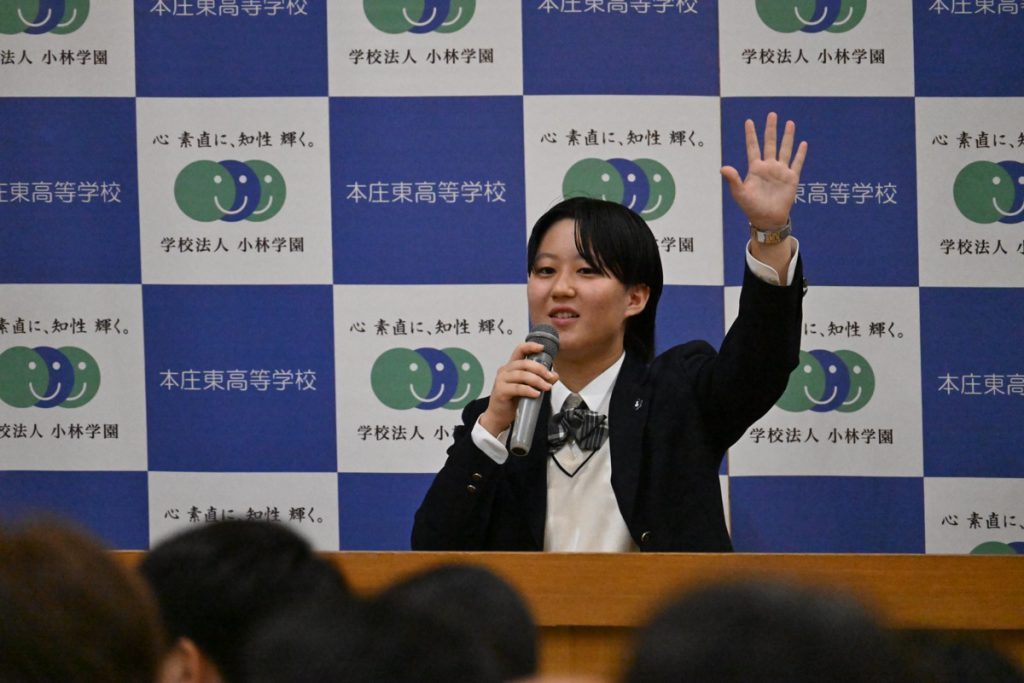その後、教職員と在校生が学園生活についてお話しました。